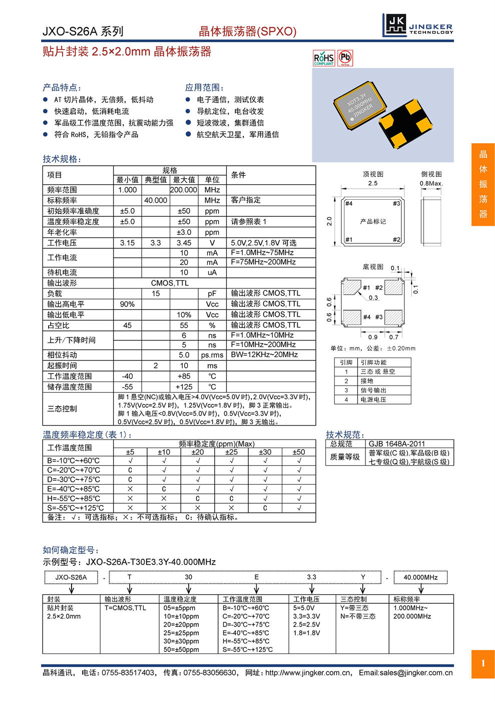 產品特點:AT切片晶體,無倍頻,低抖動;快速啟動,低消耗電流;軍品級工作溫度范圍,抗震動能力強;符合RoHS,無鉛指令產品。應用范圍:電子通信,測試儀表;導航定位,電臺收發(fā);短波微波,集群通信;航空航天衛(wèi)星,軍用通信。